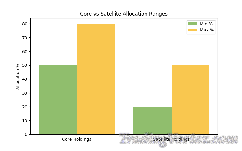 Core vs Satellite Allocation Ranges – Bar Chart: Build a durable core, experiment with small satellites.